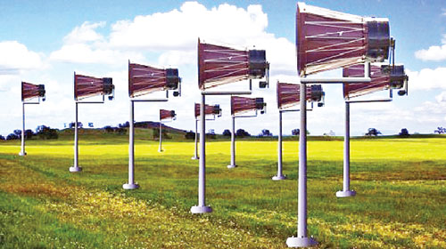 Chiếc turbin nén gió trông như một chiếc loa cầm tay, nặng 20kg, dùng để thu gió do ông Raymond Green, Mỹ thiết kế có kích cỡ khác nhau có thể dùng cho hộ gia đình hoặc khai thác công nghiệp.
