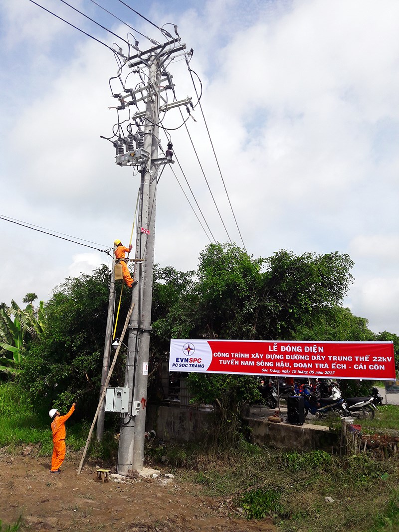 Đóng điện đường dây trung thế 22kV tuyến Nam Sông Hậu