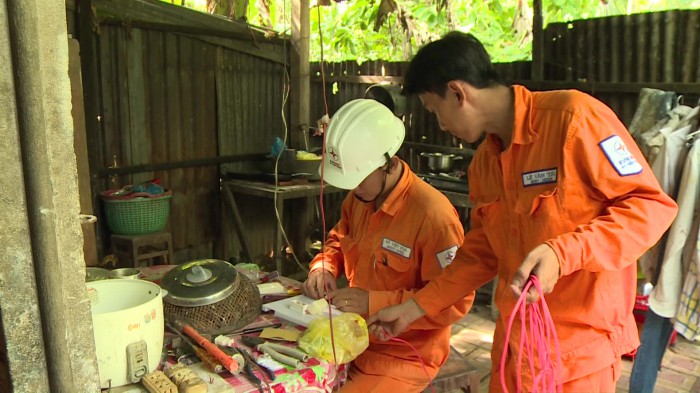 Điện lực Tiền Giang thay đèn và sửa chữa điện cho hộ nghèo