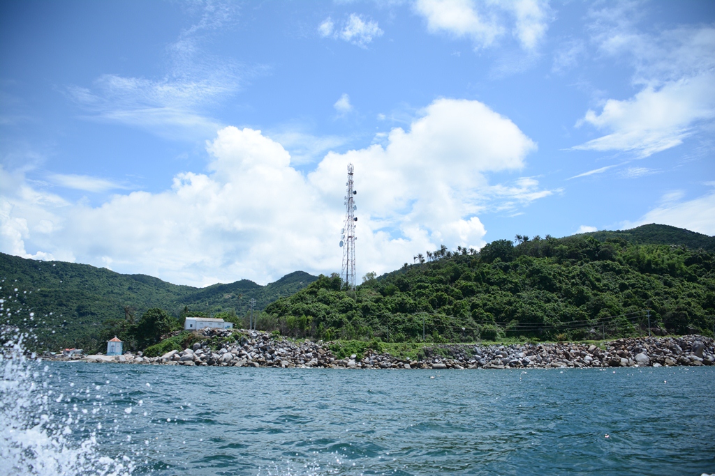 Một màu mát rượi phủ xanh khắp đảo như làm dịu đi cơn nắng trưa chói chang khi đoàn công tác của chúng tôi sau hơn 3 giờ nhấp nhô trên 90km đường biển, từ Rạch Giá xuống điểm đầu của đường dây 110kV...