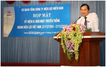 Sáng ngày 17/12/2015, Cơ quan Tổng công ty Điện lực miền Nam (EVN SPC) đã tổ chức buổi họp mặt nhân kỷ niệm 61 năm ngày truyền thống ngành Điện lực Việt...