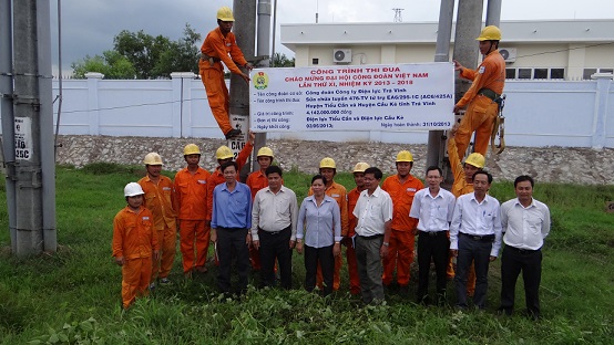 Công đoàn PC Trà Vinh: Gắn biển 02 công trình thi đua chào mừng Đại hội XI Công đoàn Việt Nam