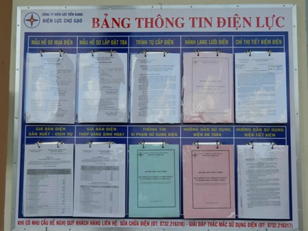 Nhằm giúp cho người dân có thể tiếp cận được các thông tin về ngành Điện một cách dễ dàng và thuận tiện, Điện lực Chợ Gạo (pc TiỀn Giang) đã lắp đặt “Bảng thông tin điện lực” tại trụ sở UBND các xã...
