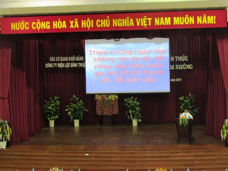 376 CBCNV Công ty đã được được Báo cáo viên của Ban Chỉ đạo phòng, chống tham nhũng Trung ương truyền đạt những nội dung về tình hình tham nhũng hiện nay, nhận diện tham nhũng, nguyên nhân và hậu quả...