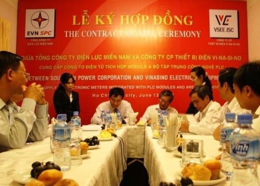 Vừa qua, Lễ ký kết hợp đồng mua công tơ điện tử một pha tích hợp module và bộ tập trung công nghệ PLC giữa Công ty Cổ phần Thiết bị Điện Vinasino (VSEE) và Tổng công ty Điện lực miền Nam...
