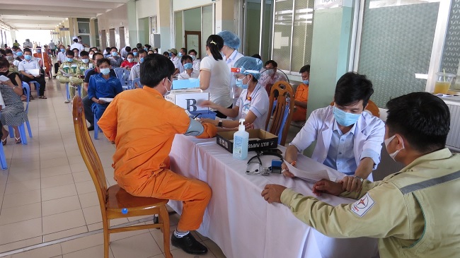 Thực hiện tiêm ngừa vắc xin COVID-19 cho CBCNV Công ty Điện lực Bình Thuận và các đơn vị trực thuộc EVN đóng trên địa bàn tỉnh Bình Thuận