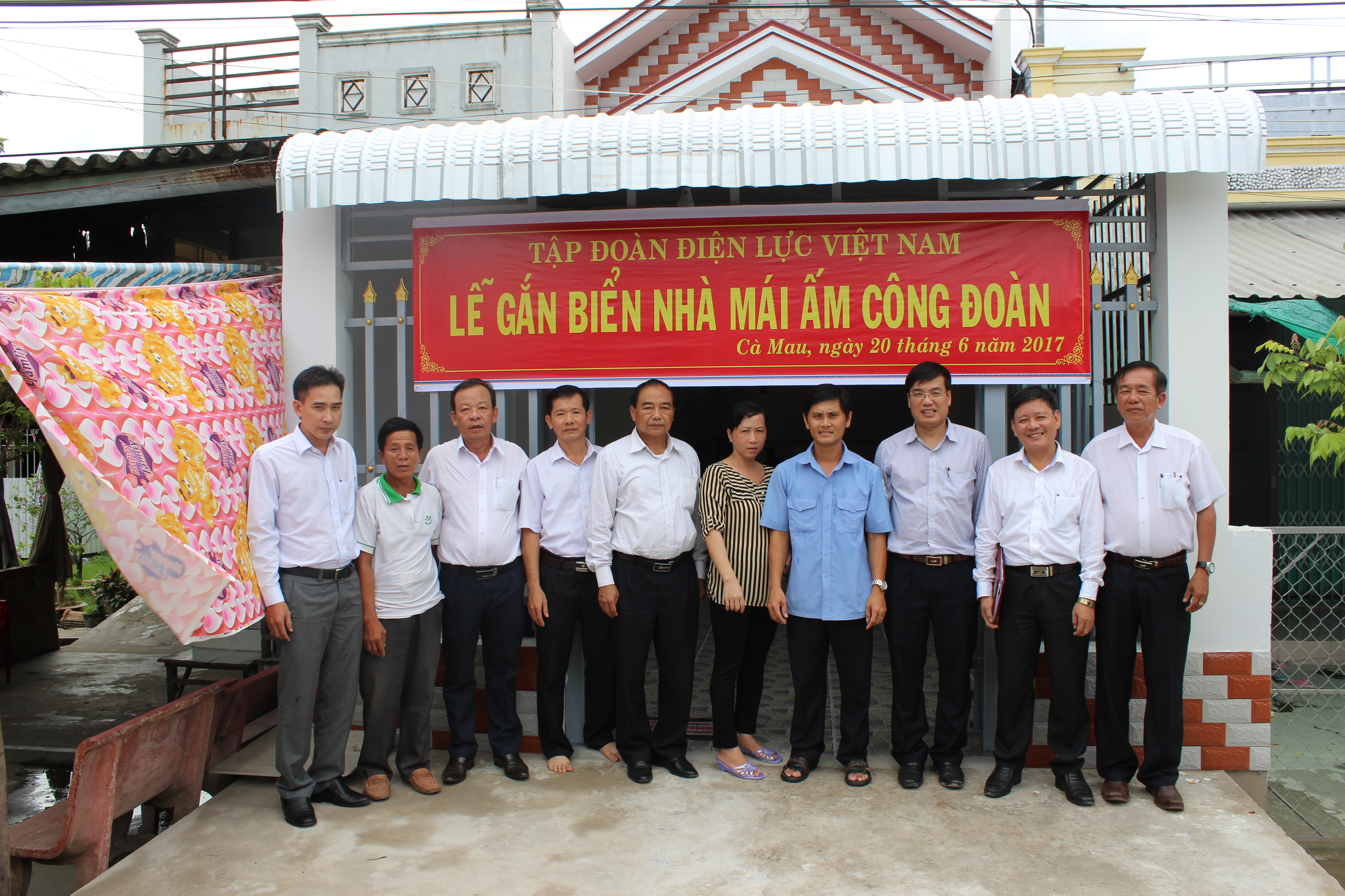 Ngày 20-06 – 2017, Ông Uông Quang Huy - Trưởng Ban Chính Sách & Pháp luật Công đoàn Điện lực Việt Nam làm Trưởng đoàn, đã đến thành phố Cà Mau trao và gắn biển trao nhà “Mái ấm Công...