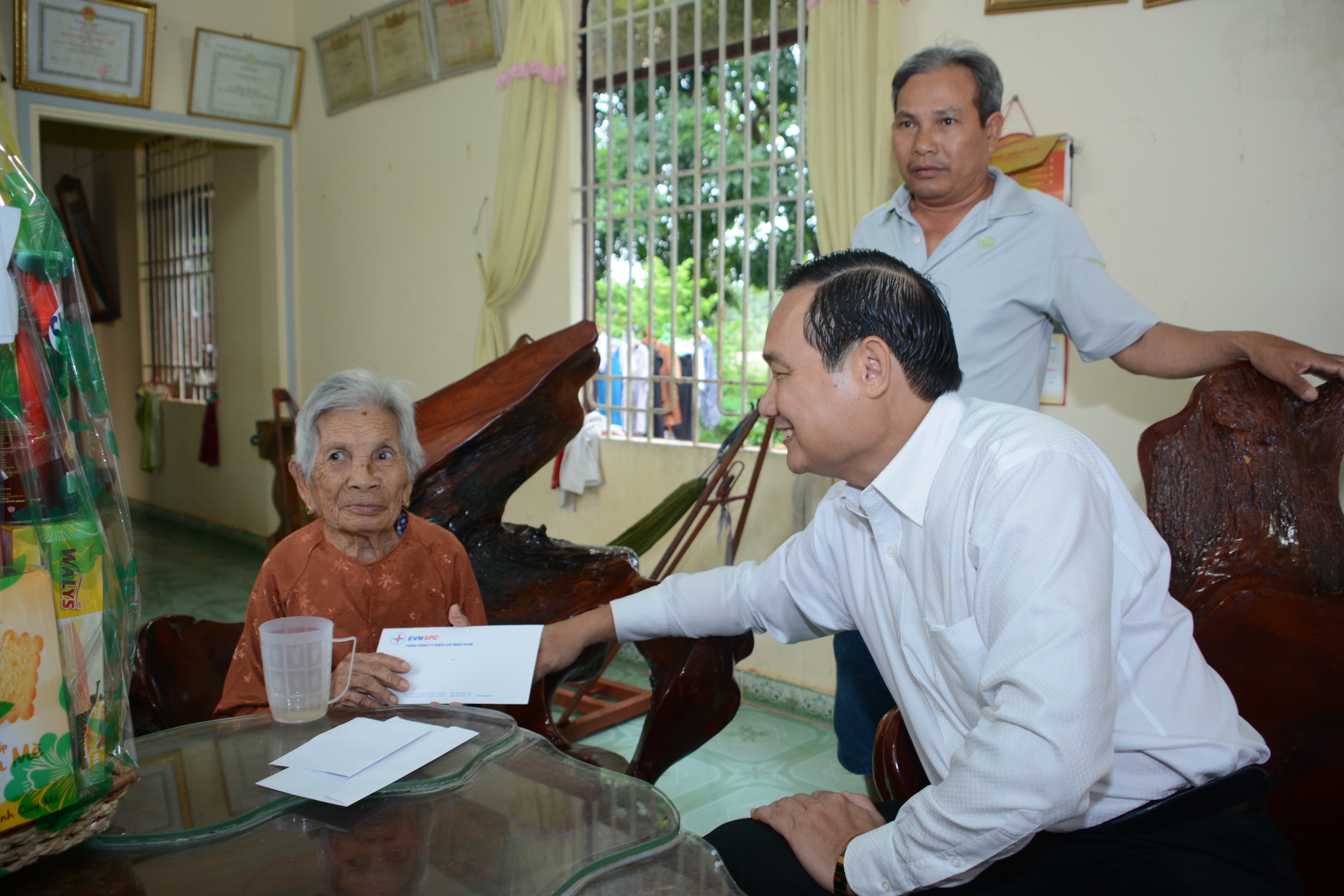 Như những người con, người cháu về thăm mẹ Việt Nam anh hùng Huỳnh Thị Hảo, có chồng và 2 con liệt sĩ tại khu phố Phước Hòa, phường Tân Thiện, thị xã Đồng Xoài, tỉnh Bình Phước, Chủ tịch kiêm Tổng...