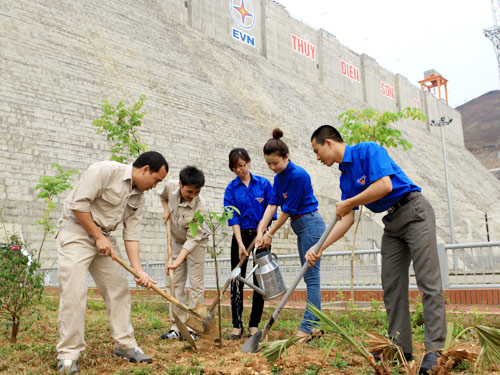 Hàng chục bạn trẻ đã dành kỳ nghỉ cuối tuần để vượt hàng trăm cây số mong được góp sức vun trồng vườn cây thanh niên tại công trình thủy điện lớn nhất Đông Nam Á.