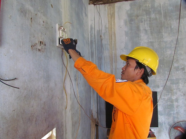 Đoàn cơ sở Công ty Điện lực Ninh Thuận sửa chữa điện cho các hộ dân nghèo, gia đình chính sách
