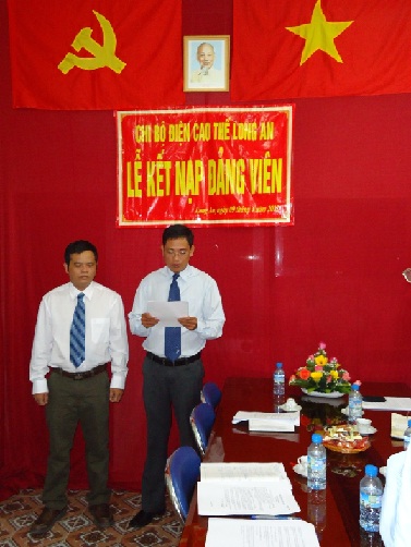 Chi bộ Điện cao thế Long An (thuộc Đảng bộ Công ty Lưới điện cao thế miền Nam) đã tổ lễ chức kết nạp Đảng cho quần chúng ưu tú Lê Hồng Hiển – Phụ trách trạm 110kV Đức Hòa.