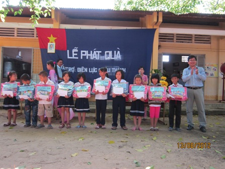 Nhân dịp lễ khai giảng năm học 2012-2013, Công đoàn Điện lực Châu Thành phối hợp với Đoàn ủy Công ty Điện lực Tây Ninh tổ chức tặng 30 phần quà (mỗi phần trị giá 350 ngàn đồng) cho học sinh nghèo...