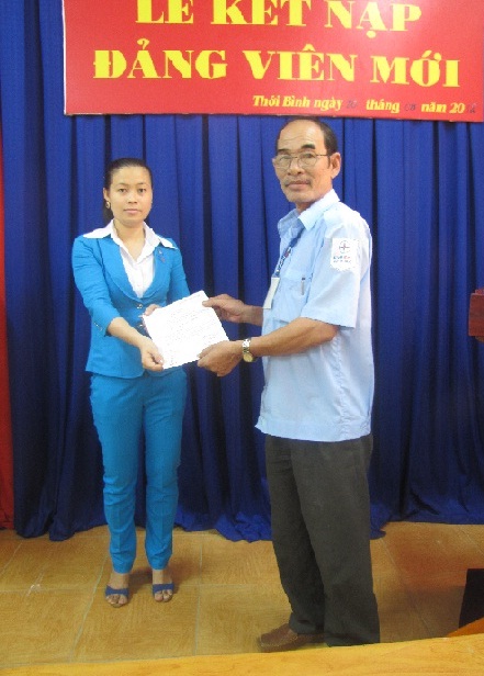 Vừa qua ngày 20/08/2012 Chi bộ Điện lực Thới Bình - PC Cà Mau đã tổ chức buổi lể kết nạp Đảng cho quần chúng ưu tú vào Đảng cộng sản Việt Nam.
