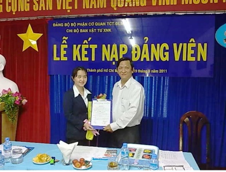 Thực hiện nghị quyết của Đảng bộ về công tác phát triển Đảng, ngày 19/09/2011, Chi bộ Ban Vật tư Xuất nhập khẩu, thuộc Đảng bộ bộ phận Cơ quan Tổng công ty Điện lực miền Nam đã tổ chức kết nạp Đảng...