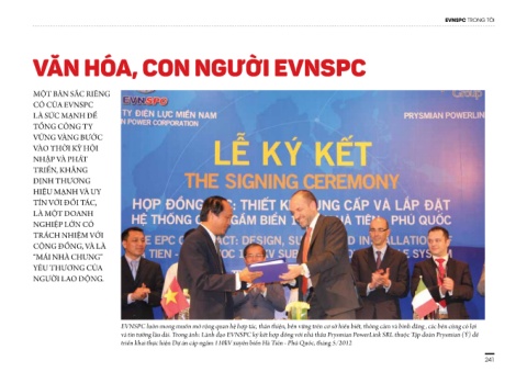 và tin tưởng lâu dài. Trong ảnh: lãnh đạo EVnSpC ký kết hợp đồng với nhà thầu prysmian powerlink Srl thuộc Tập đoàn prysmian (Ý) để