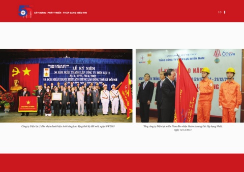 EVNSPC 1975 - 2025 10 Xây dựng - Phát triển - thắP sáng niềm tin 10 Công ty Điện lực 2 đón nhận danh hiệu Anh hùng Lao động thời kỳ đổi mới, ngày 9/4/2005 Tổng công ty Điện lực miền Nam đón nhận Huân chương Độc lập hạng Nhất, ngày 12/12/2014