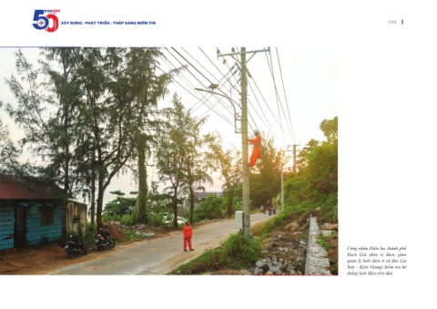 EVNSPC 1975 - 2025 Xây dựng - Phát triển - thắP sáng niềm tin 164 Công nhân Điện lực thành phố Rạch Giá (đơn vị được giao quản lý lưới điện ở xã đảo Lại Sơn – Kiên Giang) kiểm tra hệ thống lưới điện trên đảo.