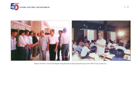 EVNSPC 1975 - 2025 Xây dựng - Phát triển - thắP sáng niềm tin 20 Đồng chí Đỗ Mười - Chủ tịch Hội đồng Bộ trưởng phát biểu tại Hội nghị tổng kết công tác năm 1990 của Công ty Điện lực 2.