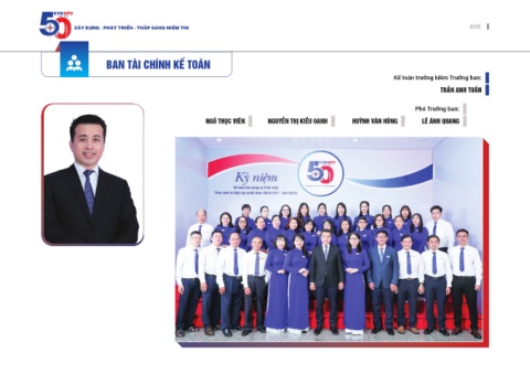 EVNSPC 1975 - 2025 Xây dựng - Phát triển - thắP sáng niềm tin 258 Ban tÀi chính Kế toÁn Kế toán trưởng kiêm Trưởng ban: trần anh tuấn Phó Trưởng ban: ngô thục Viên nguyễn thị Kiều oanh huỳnh Văn hùng lê Ánh Quang
