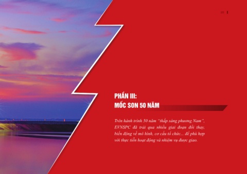25 Phần III: mốc son 50 năm Trên hành trình 50 năm “thắp sáng phương Nam”, EVNSPC đã trải qua nhiều giai đoạn đổi thay, biến động về mô hình, cơ cấu tổ chức... để phù hợp với thực tiễn hoạt động và nhiệm vụ được giao.