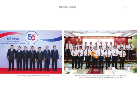 Phần III: Mốc son 50 năm 45 Ban Thường vụ Đảng uỷ EVNSPC nhiệm kỳ 2025-2030 Đồng chí Nguyễn Hữu Tuấn – Phó Bí thư Thường trực Đảng uỷ EVN (thứ 4 từ phải sang) tặng hoa chúc mừng Ban Chấp hành Đảng bộ EVNSPC nhiệm kỳ 2025-2030