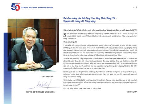 hân dịp kỷ niệm 50 năm Ngày thành lập Tổng công ty Điện lực miền Nam (1975 - 2025), tôi xin gửi tới