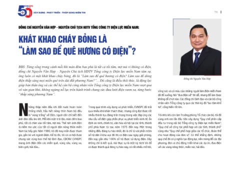 điện thắp sáng mọi miền quê trên dải đất phương Nam?”... Đó cũng là điều thôi thúc, là động lực Đồng chí Nguyễn Văn Hợp