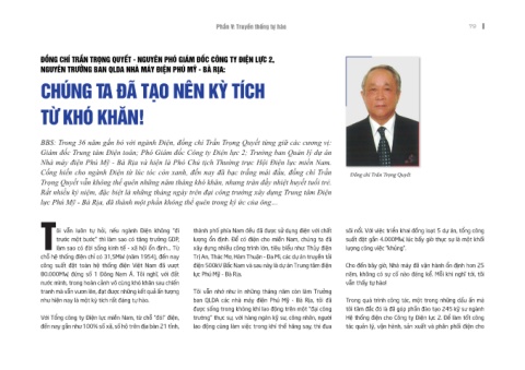 Đồng chí Trần Trọng quyếT - nguyên Phó giám Đốc công Ty Điện lực 2,