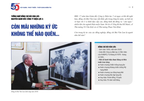 nguyên giám Đốc công Ty Điện lực 2: hưu, đồng chí Bùi Văn Lưu vẫn khắc ghi trong lòng kỷ niệm, sự biết ơn