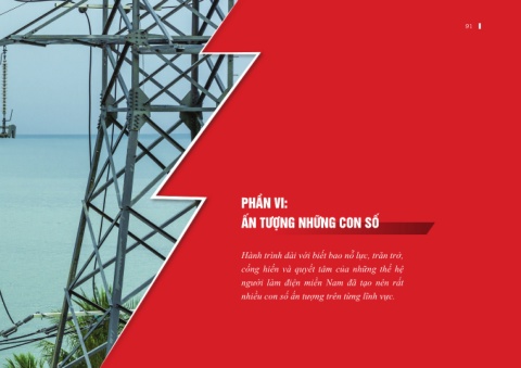 91 91 Phần VI: ấn tượng những con số Hành trình dài với biết bao nỗ lực, trăn trở, cống hiến và quyết tâm của những thế hệ người làm điện miền Nam đã tạo nên rất nhiều con số ấn tượng trên từng lĩnh vực.