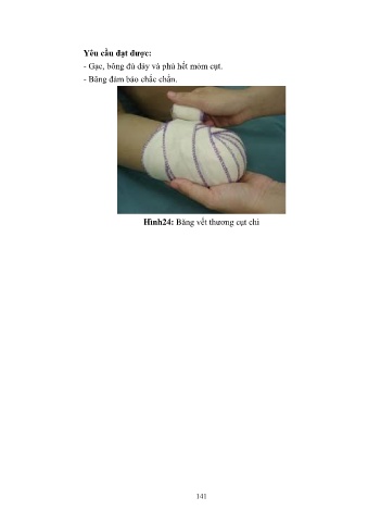 Yêu cầu đạt được: - Gạc, bông đủ dày và phủ hết mỏm cụt. - Băng đảm bảo chắc chắn. Hình24: Băng vết thương cụt chi 141