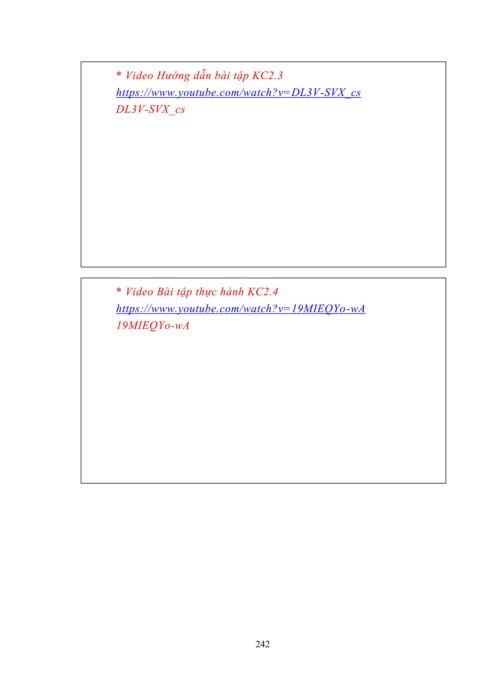 * Video Hướng dẫn bài tập KC2.3 https://www.youtube.com/watch?v=DL3V-SVX_cs DL3V-SVX_cs * Video Bài tập thực hành KC2.4 https://www.youtube.com/watch?v=19MIEQYo-wA 19MIEQYo-wA 242