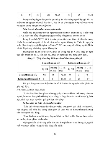 ngờ cần phải tính TLTC kết hợp cả 2 thức ăn nghi ngờ như bảng dưới đây).