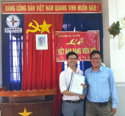 2. Chi bộ Điện lực Cái Nước (PC Cà Mau) đã tổ chức kết nạp Đảng cho quần chúng ưu tú Trần Hữu Hải, Trưởng phòng Kinh doanh Điện lực.