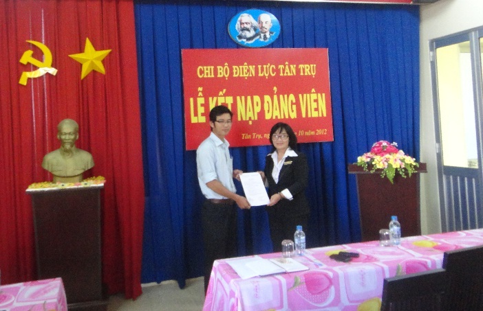 4. Chi bộ Điện lực Tân Trụ (thuộc Đảng bộ Công ty Điện lực Long An) đã tổ chức kết nạp đảng cho đoàn viên ưu tú Châu Hữu Hiền.