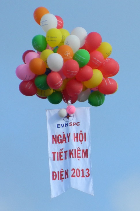 Bong bóng mang khẩu hiệu tuyên truyền TKĐ bay trên bầu trời nơi diễn ra ngày hội.