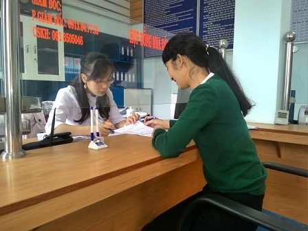 Nhân viên chăm sóc khách hàng của Điện lực Đơn Dương (PC lâm Đồng) hướng dẫn khách hàng thanh toán tiền điện qua ngân hàng.