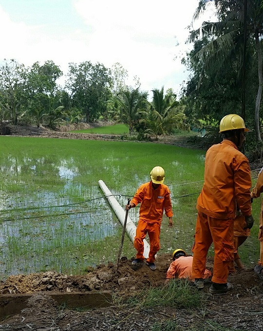 Và công nhân Điện lực Cái Bè đã khắc phục lưới điện và đóng điện hoàn toàn vào lúc 15h00, ngày 21/6/2016.