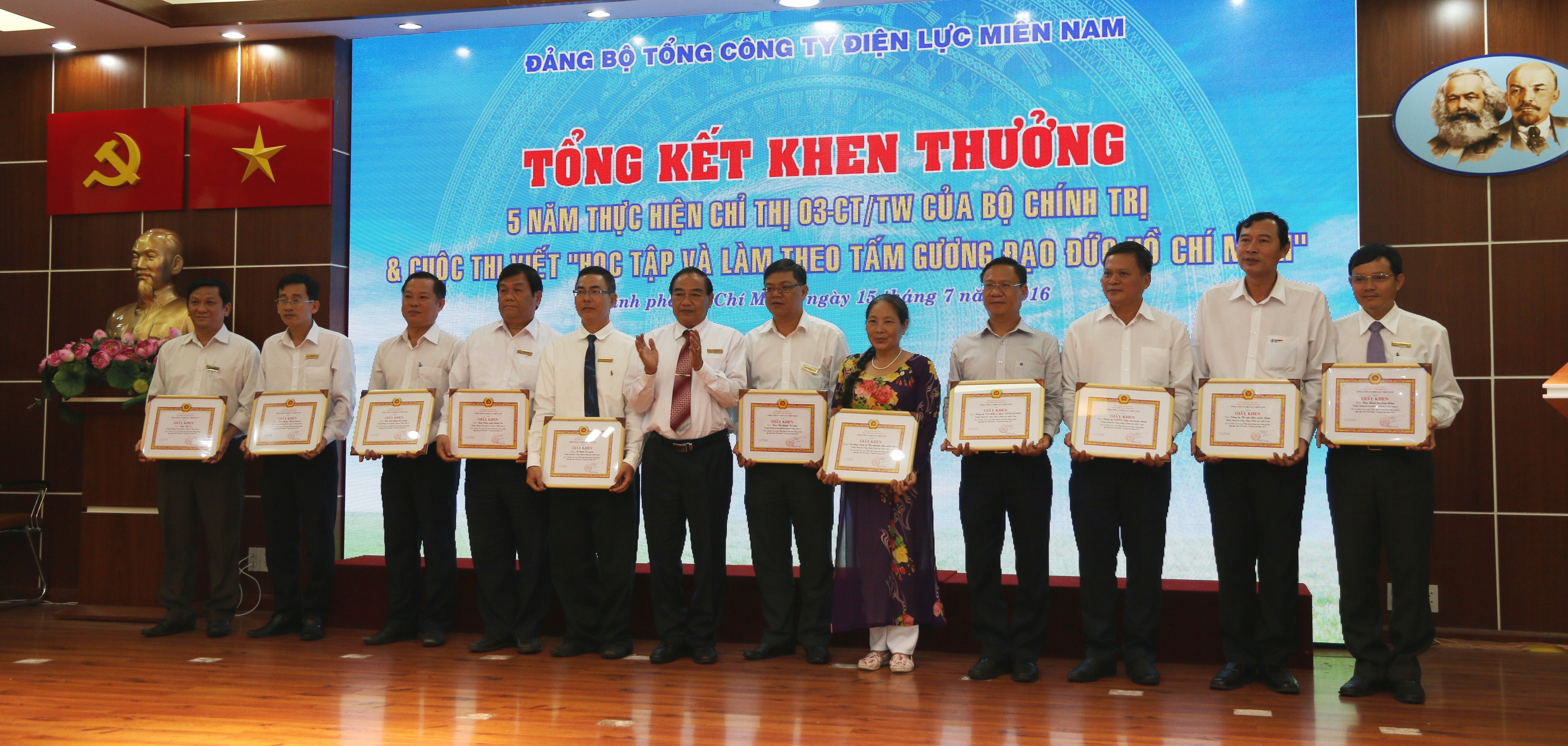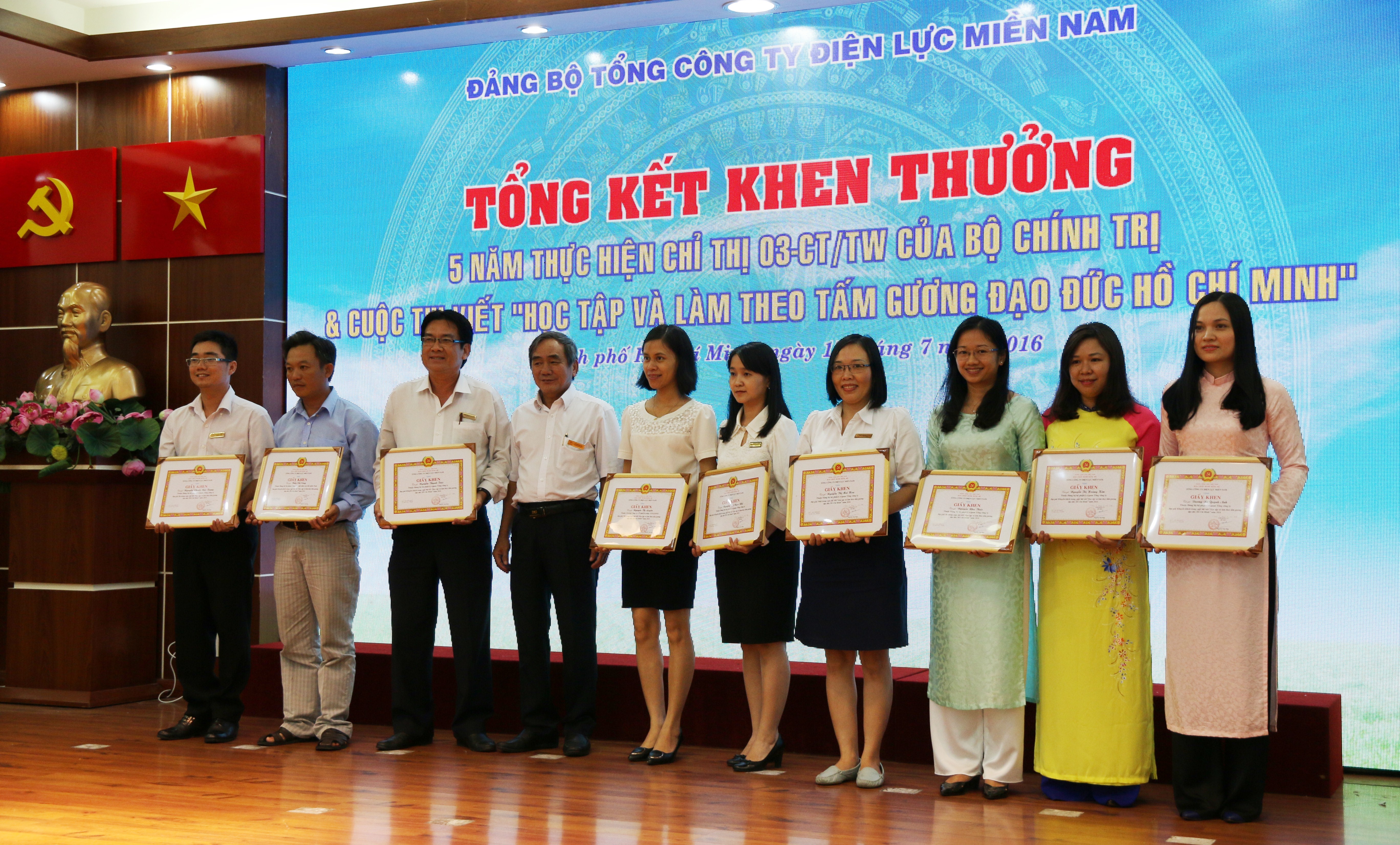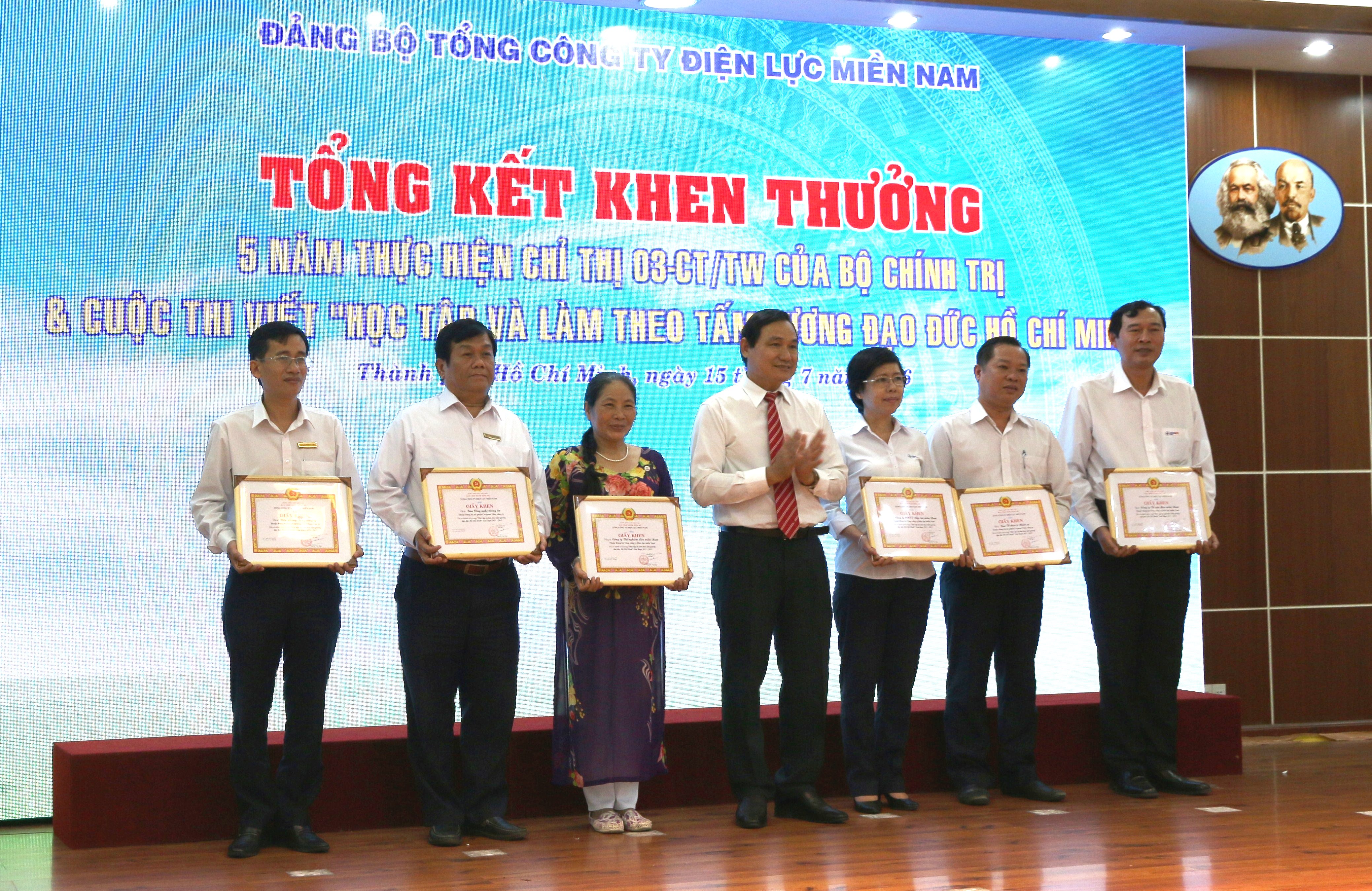 Ngày 15/7, Tổng công ty Điện lực miền Nam (EVN SPC) tổ chức Hội nghị sơ kết công tác Đảng 6 tháng đầu năm, nhiệm vụ 6 tháng cuối năm 2016, trao tặng Huy hiệu 30 năm tuổi Đảng và khen thưởng các tập thể, cá nhân thực hiện tốt chỉ thị 03-CT/TW, công tác phát triển Đảng 6 tháng đầu năm và trao giải cuộc thi viết “CBCNV EVN SPC học tập và làm theo tấm gương đạo đức Hồ Chí Minh”.