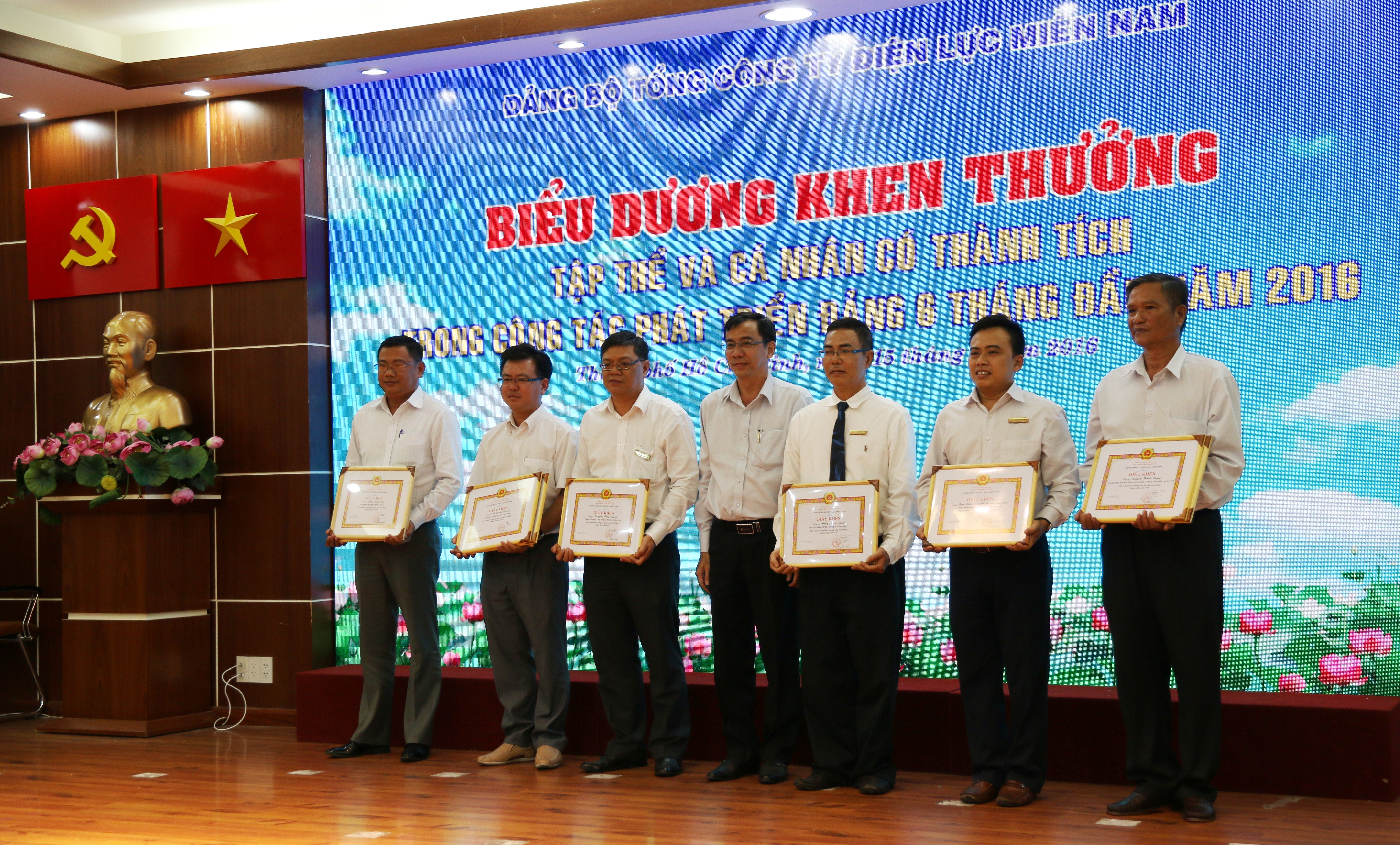 Tại Hội nghị, Đảng bộ Tổng công ty Điệnlực miền Nam cũng đã tổ chức trao Huy hiệu 30 năm tuổi Đảng cho đồng chí Trần Văn Phong - Chi bộ Ban Kiểm soát nội bộ; khen thưởng thành tích trong “Học tập và làm theo tấm gương đạo đức Hồ Chí Minh”, bao gồm: 13 tập thể và 17 cá nhân năm 2015, 8 tập thể và 8 cá nhân trong giai đoạn 2011-2015; khen thưởng 4 tập thể và 11 cá nhân đạt các giải cao trong cuộc thi viết: “CBCNV EVN SPC học tập và làm theo tấm gương đạo đức Hồ Chí Minh”; 6 tập thể và 12 cá nhân thực hiện tốt công tác phát triển đảng viên 6 tháng đầu năm 2016.