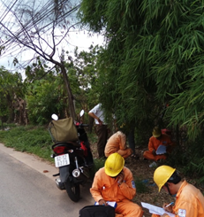 Điện lựcBàu Bàng tiến hành xử lý sự cố cây gãy ngã vào đường dây |