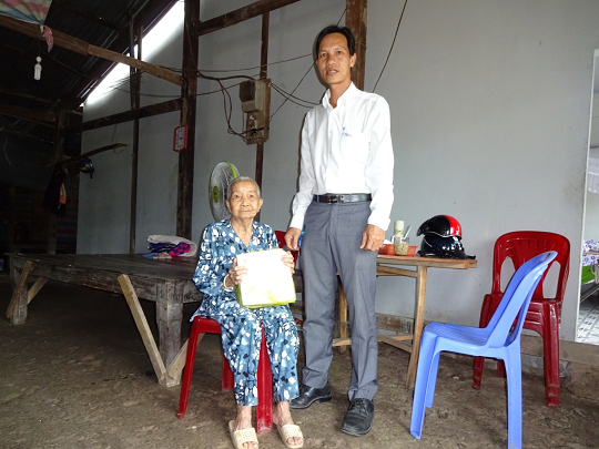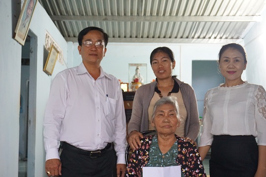 Mẹ liệt sỹ Lê Thị Bê có con trai là liệt sỹ Võ Văn Lép đã hy sinh ở chiến trường Campuchia vào ngày 16/02/1983 . Hiện tại, mẹ đang sống chung gia đình với vợ chồng người con trai út là anh Võ Văn Sỹ. Do tuổi cao, sức yếu, bị bệnh tai biến nên tay chân mẹ thường hay run rẩy, đi đứng không vững, mọi sinh hoạt cá nhân đều nhờ vào bàn tay chăm sóc của người con dâu hiếu thảo. Khi đoàn đến thăm, mẹ đã xúc động không nói rõ nên lời, bằng những biểu cảm yếu ớt, chúng tôi hiểu được đó là lời cảm ơn chân thành từ mẹ.