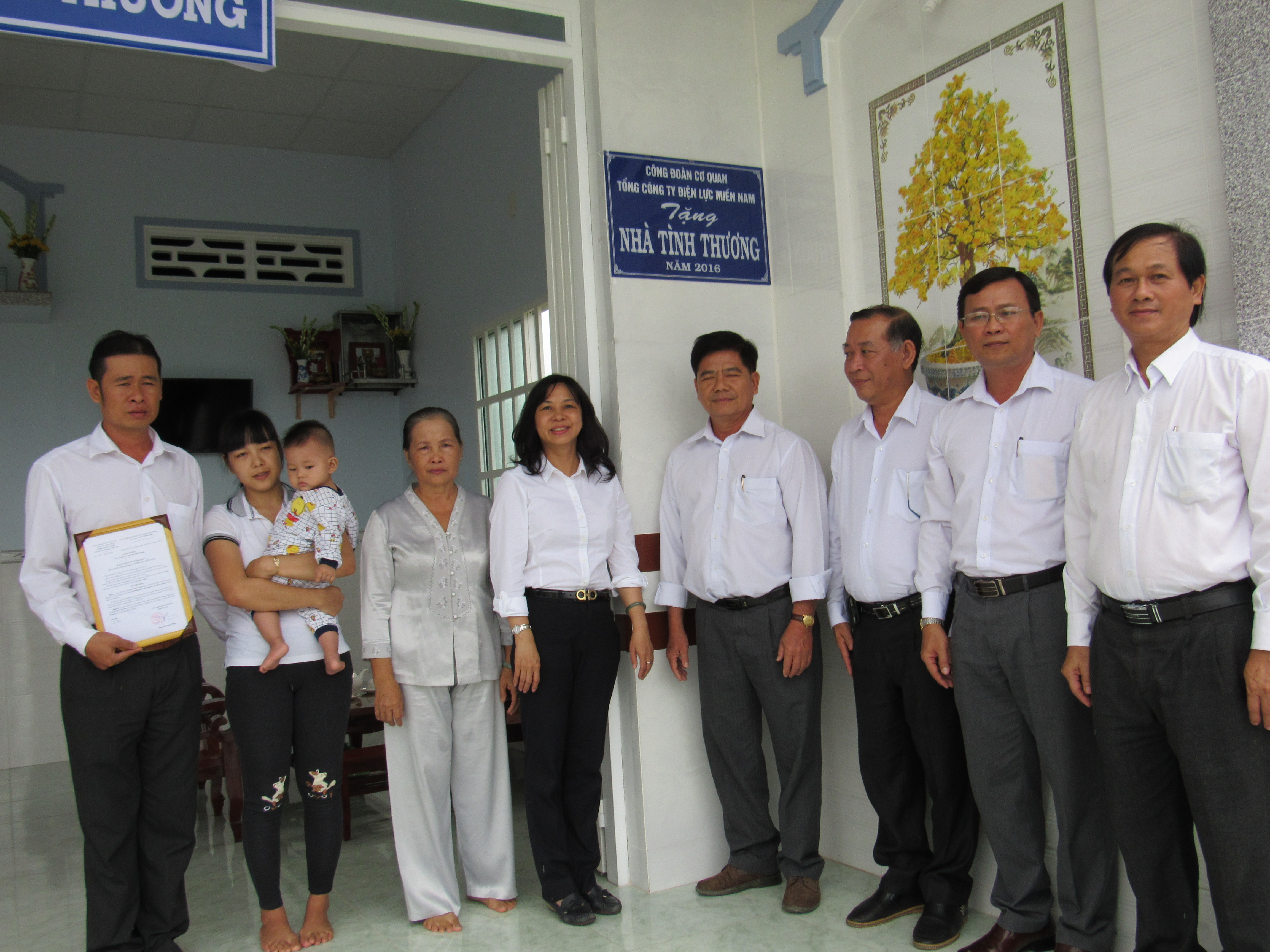 Ngày 7/10/2016, tại ấp Tân Thuận, xã Tân Quới, huyện Bình Tân, tỉnh Vĩnh Long, Công đoàn Cơ quan Tổng công ty Điện lực miền Nam đã tổ chức trao nhà tình thương cho anh Lâm Văn Hưng - cán bộ kỹ thuật Điện lực Bình Tân - Công ty Điện lực Vĩnh Long. Tham dự có Ông Nguyễn Công Hầu – Phó Chủ tịch Công đoàn, Phó Tổng Giám đốc Tổng công ty, Bà Nguyễn Thanh Thủy – Chủ tịch công đoàn cơ quan Tổng công ty cùng đại diện lãnh đạo và công đoàn Công ty Điện lực Vĩnh Long và Điện lực Bình Tân.