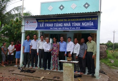 Trong năm 2016, riêng tại tỉnh Sóc Trăng EVN SPC đã hỗ trợ kinh phí để xây dựng 10 căn nhà tỉnh nghĩa cho các gia đình nghèo, gia đình có hoàn cảnh đặc biệt khó khăn với tổng trị giá 500 triệu đồng./.