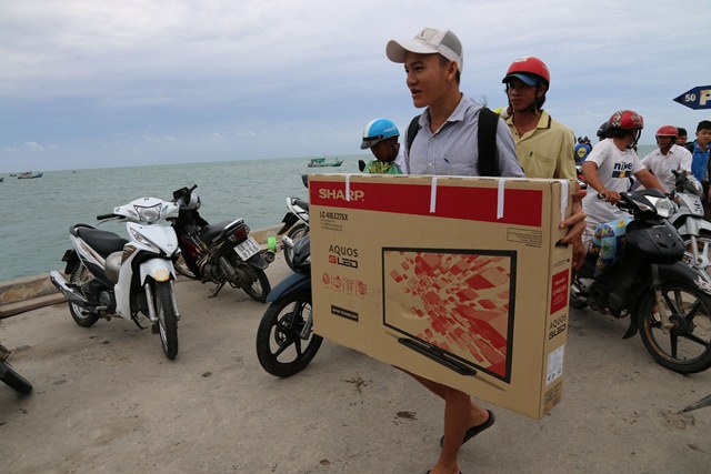 Người dân mua sắm các thiết bị điện máy để sử dụng khi biết điện đã về trên xã đảo Lại Sơn