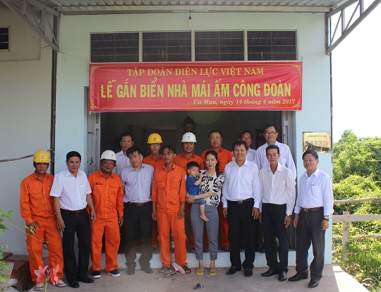 Ngày 13-14/04/2017 Công đoàn Điện lực Việt Nam phối hợp với Công đoàn Tổng Công ty Điện lực Miền Nam, Công ty Điện lực An Giang, Công ty Công ty Điện lực Cà Mau trao 03 nhà “mái ấm công đoàn” cho các công đoàn viên Nguyễn Hải Đăng, - Công đoàn bộ phận Điện lực Ngọc Hiển, Nguyễn Tấn Đạt - Công đoàn bộ phận Điện lực Đầm Dơi, PC Cà Mau, Trần Việt Dũng là nhân viên ghi điện - phòng Kinh doanh Điện lực Châu Đốc, PC An Giang.