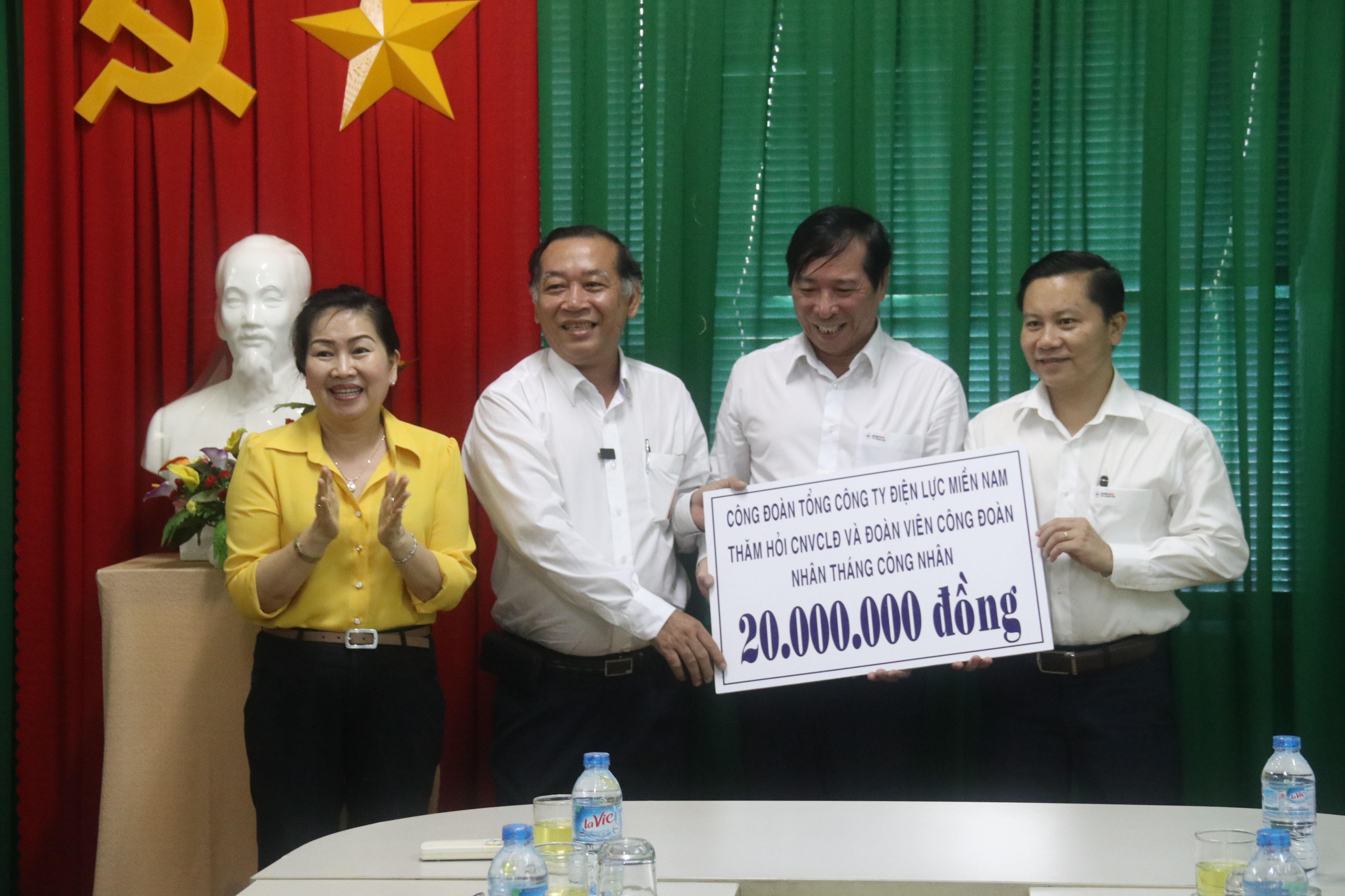 Điện lực Trảng Bom: Thay mặt đoàn công tác, ông Nguyễn Công Hầu - Phó Tổng Giám đốc, Phó Chủ tịch Công đoàn EVNSPC đã ân cần thăm hỏi tình hình việc làm, môi trường làm việc, đời sống của người lao động tại đơn vị. Đồng thời, ghi nhận tinh thần vượt khó và biểu dương những thành tích, nỗ lực của tập thể CBCNV Điện lực trong thời gian qua. Đoàn công tác cũng đã trao số tiền hỗ trợ là 20 triệu đồng cho đơn vị để trang bị một số đồ dùng thiết thực nhằm nâng cao đời sống tinh thần của NLĐ như: tủ sách công đoàn, bàn, vợt, lưới bóng bàn, lò vi sóng,…