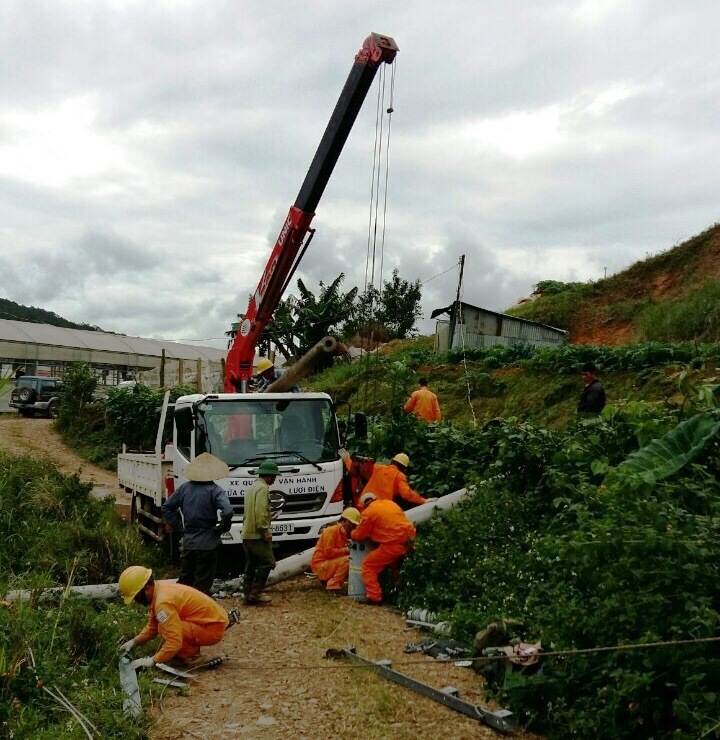 Điện lực Lâm Đồng khắc phục sự cố điện do bão 12 gây ra, ảnh PC LĐ