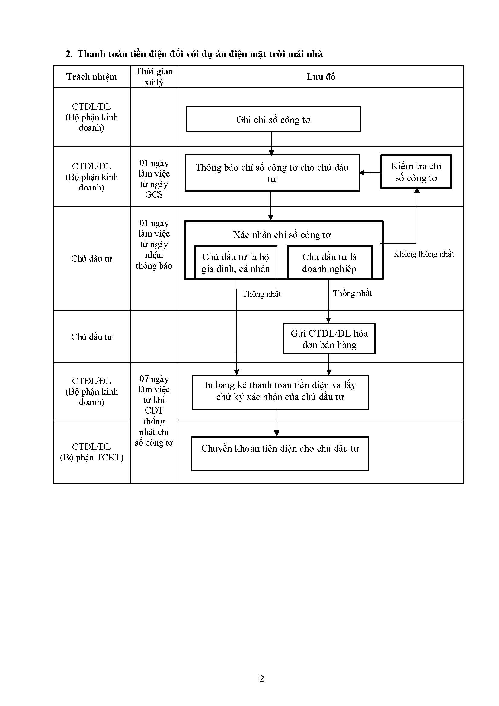 2. Thanh toán tiền điện đối với dự án điện mặt trời mái nhà