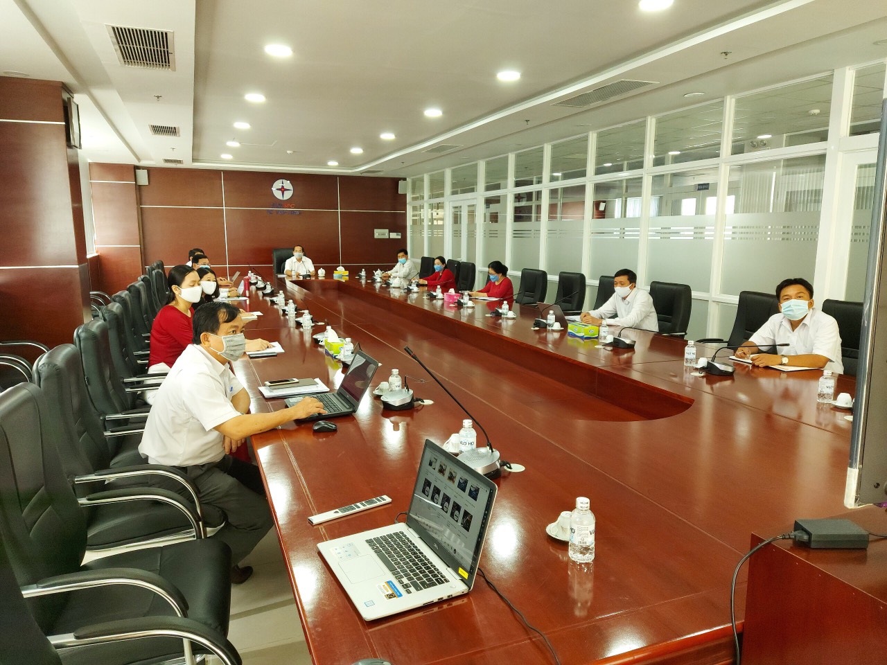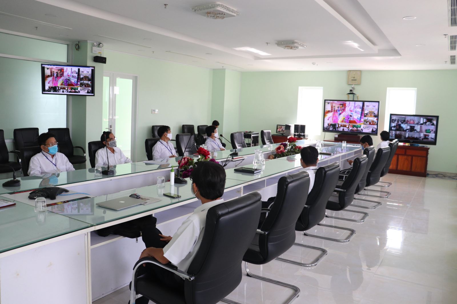 Đại biểu dự Lễ kỷ niệm 45 năm và Hội nghị điển hình tiên tiến qua hình thức trực tuyến và bảo đảm khoảng cách theo khuyến cáo của Bộ Y tế và Chính phủ.